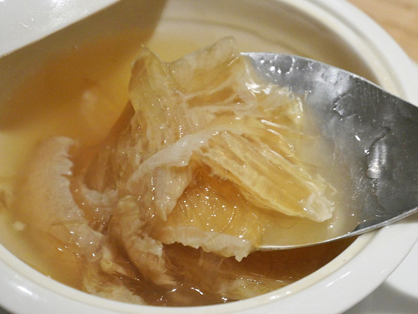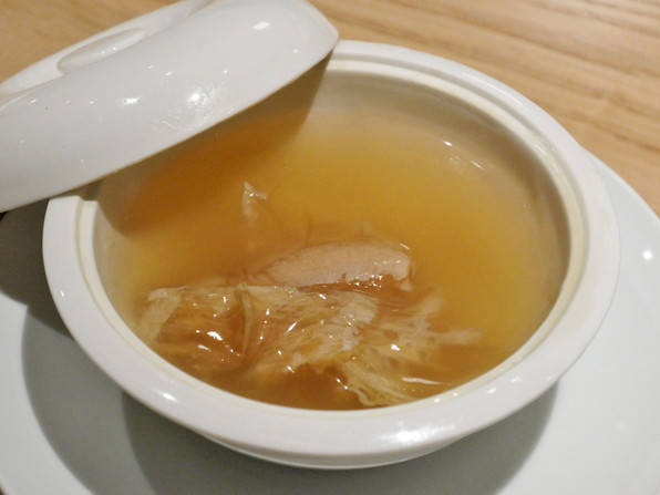 ●ふかひれスープ。よしきり鮫の尾鰭に上湯スープです。