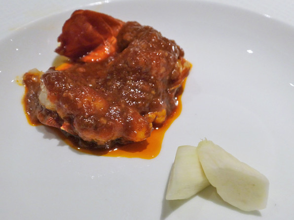 ●海老チリソース。辛味強め。辛味どれくらい大丈夫が、事前尋ねてくださいました。まこもだけと。