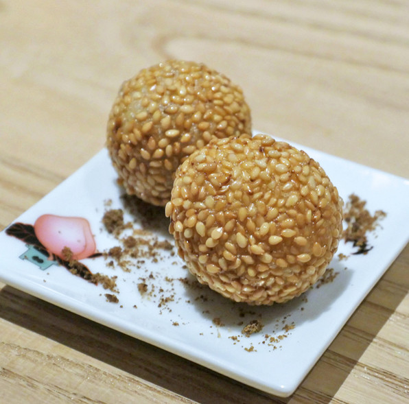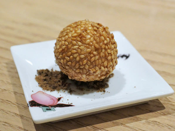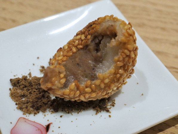 ●目の前で揚げたて、栗あんの胡麻だんご熱々。最後まで本当においしかったです。