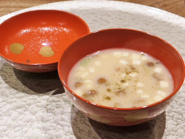 ●白味噌仕立て、なめこと豆腐のお椀です。