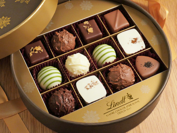 「リンツ」さんの自信作のトリュフとプラリネを詰め合わせた高級感あるショコラのギフト。