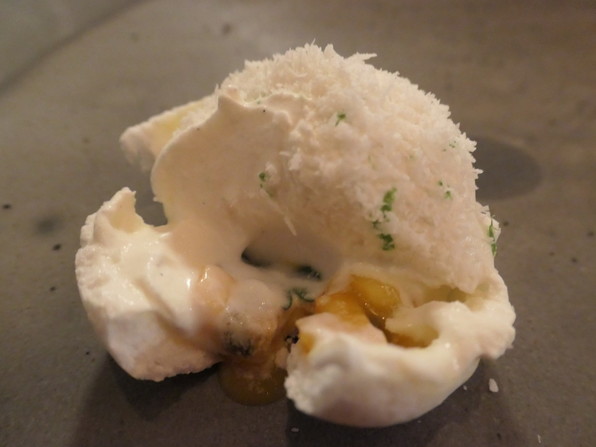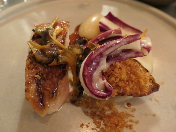 ●確かにはやるのよくわかりました。どのお皿も粋な食材の組み合わせがされていて、はっとする酸味や甘みの使い方があり食感のアクセントも効いていてよいなあと。すてきなコースでした。