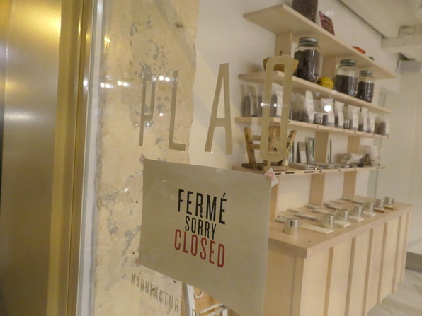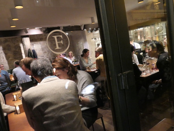 フレンチーの、予約を取らないBar a vinは18時半の開店と同時に並んでいた人々がなだれ込んでいました。白いお店は少し前に開いたショコラ専門店。