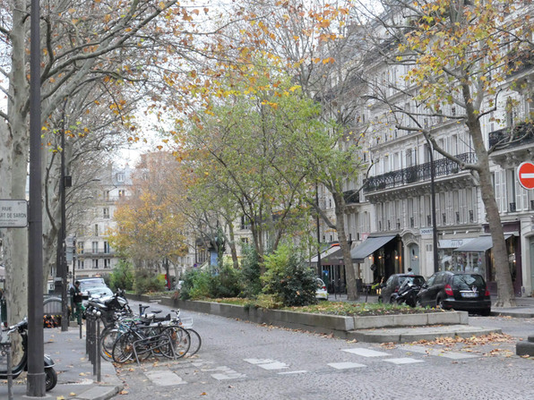 ●初冬の風情のAvenue Trudaine、アヴニュ・トゥリュデーヌ、季節が違うと前回とまったく違う印象です。