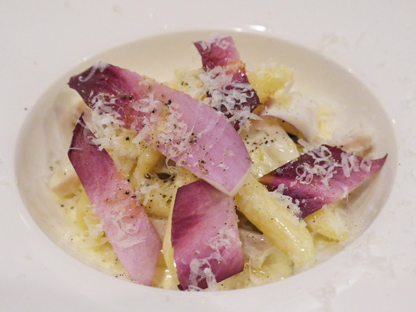 ●フォルマッジョ4種類と赤チコリのショートパスタおいし。