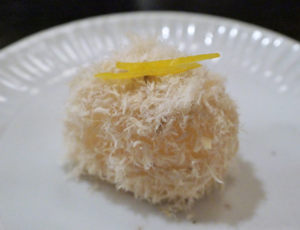 ●これは冬の名物ですね。ぶり大根。炊いた大根に、ぶりのでんぶをまぶしたものです。