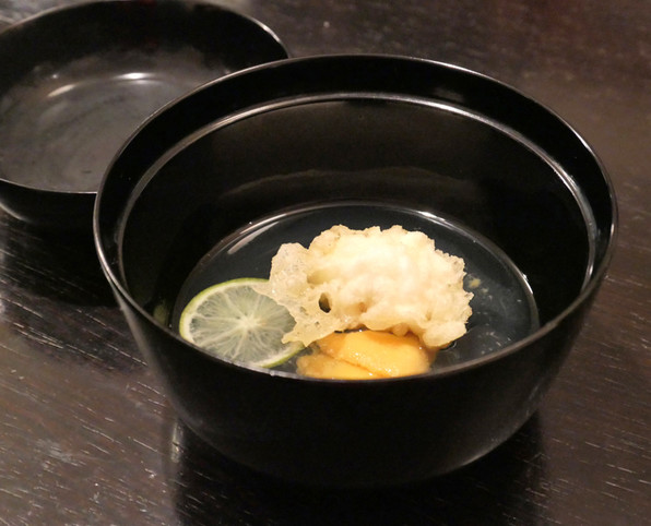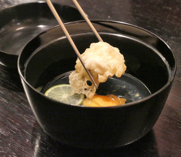 ●揚げたての天ぷら(これは雲子)をひとりずつお椀に入れてくださって、さくっとした食感のまま味わうのも毎度すばらしい。