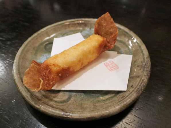 ●山口産蒸しあわびの春巻き、あわび要らない人には紋甲いかの春巻き。