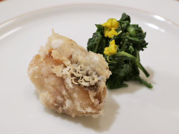 ●長崎産ぐじの立田揚げ、菊菜お浸しと。