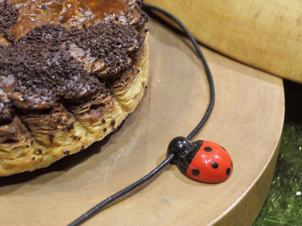 ●本日12月27日発売のガレット デ ロワ コクシネル(てんとう虫)です。どーんと重いものが多いガレット・デ・ロワなのに、これは軽やか、それでいてショコラの香味は鮮やかでフイユタージュはさくさくさく、ほんとーにおいしかった\(^o^)/\(^o^)/☆☆☆
