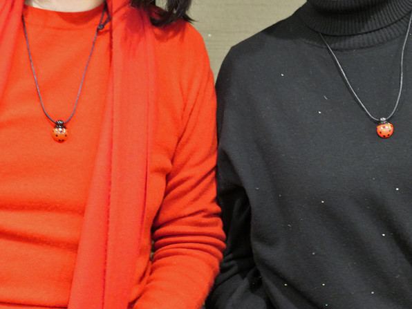 フェーヴのコクシネル=てんとう虫は、今回はペンダントにはじめからなっています。紐も通してある状態。すぐに首にかけられて楽しいですー\(^o^)/\(^o^)/