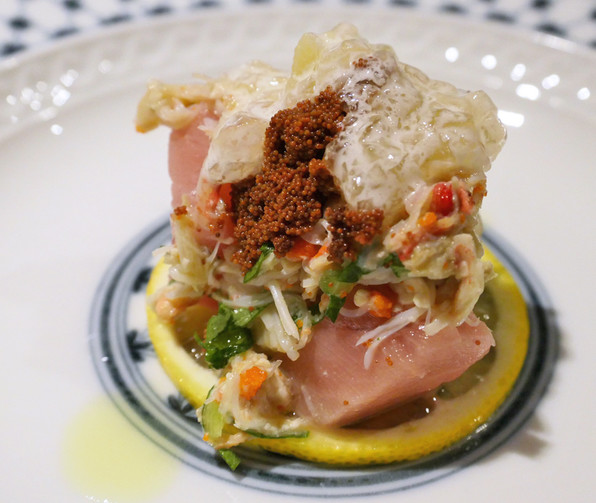 ●まずはコースでいただきました。こっぺ蟹オードヴルや蟹だしのカレーなど冬の名作が供されましたが、量がごく食べやすいものになっていて、ほどよい加減で食べ終えることができました。後から苦しいということもなく、おいしかった、よかったーー\(^o^)/\(^o^)/