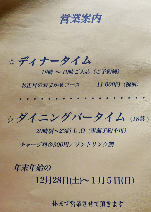●まずは18時から予約制のコース料理、その後、悪豚ちゃん(^o^)(^o^)の「ナイトメニュー」となり、アラカルト注文可能となるみたいです。