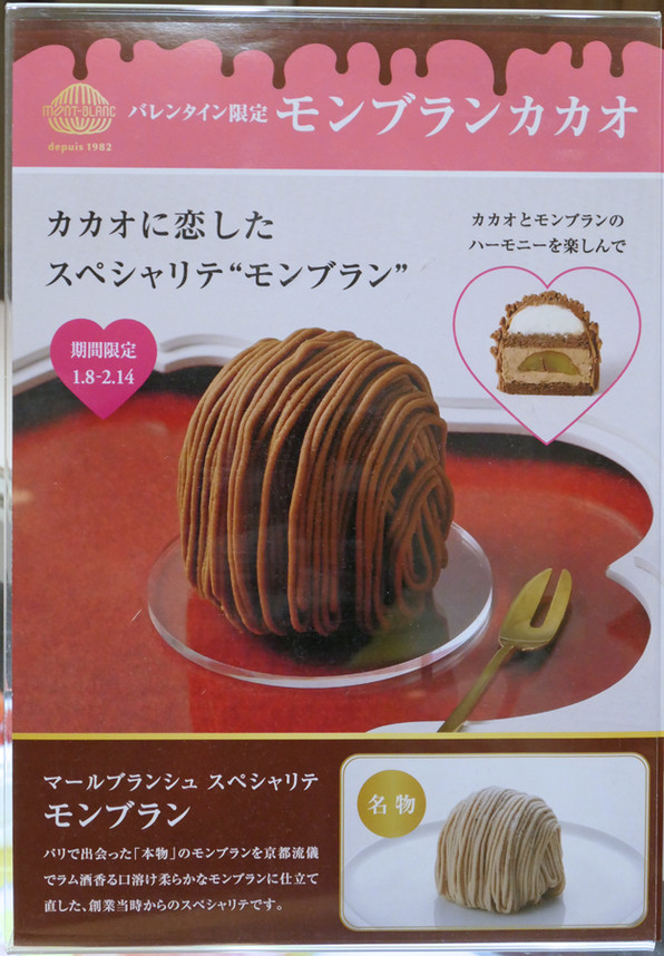 ●「マールブランシュ」さんの期間限定、1月8日~2月14日のモンブランカカオをいただきました。マロン風味のショコラ味、中にシロップ漬けにした栗入り。この頃わたしにおいてはやっている風に言うと、