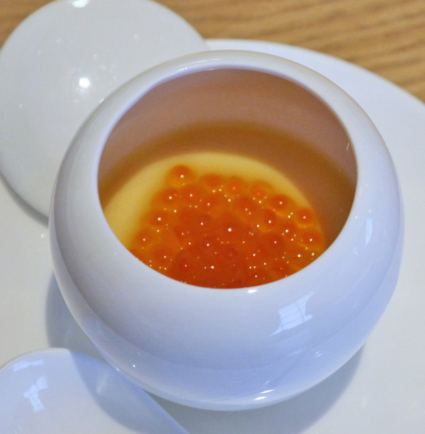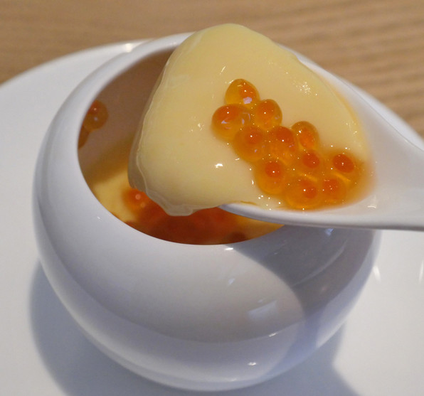 ●干し貝柱のスープの茶碗蒸しです。上にいくら。