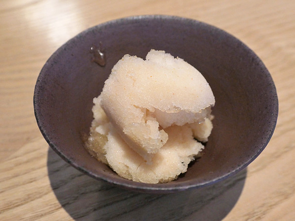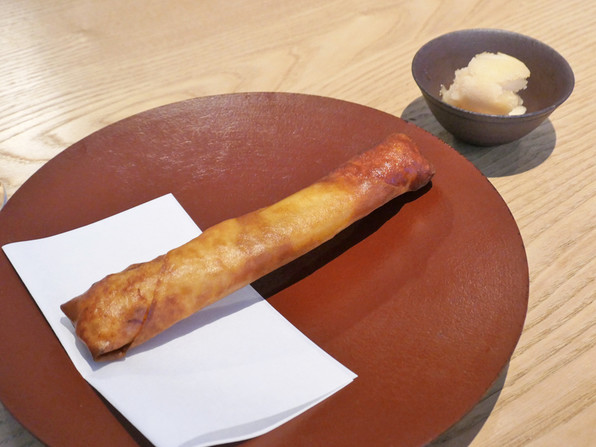 ●ピリ辛のソルベが添えられます。これを時々すくって、春巻きと共にいただくのです。なんて粋な味。