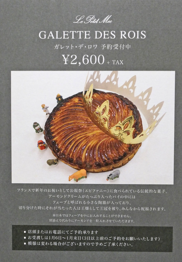 ●「ル・プチメック」のガレット・デ・ロワは1月末まで。3日前までに要予約です。