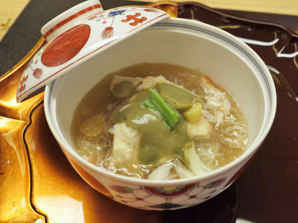 以下お料理はお昼の会席「丹頂」、9000円(税サ別)のコースです。