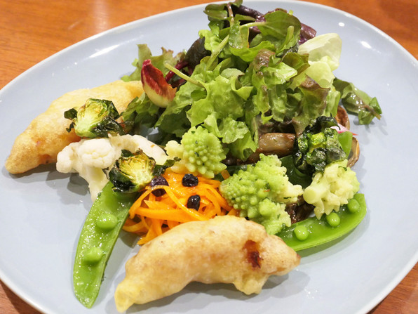 ●野菜いろいろのサラダ。焼いたのや揚げたのやマリネやいろいろ。本当においしい、楽しい☆☆☆