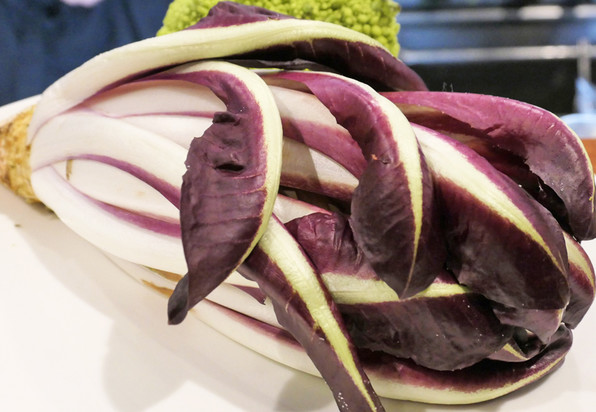 ウィキ先生に尋ねると、「ラディッキオは鎮静剤、鎮痛剤として作用するラクチュコピクリンやフラボノイドの一種であるアントシアニンを含む。」だそうです。