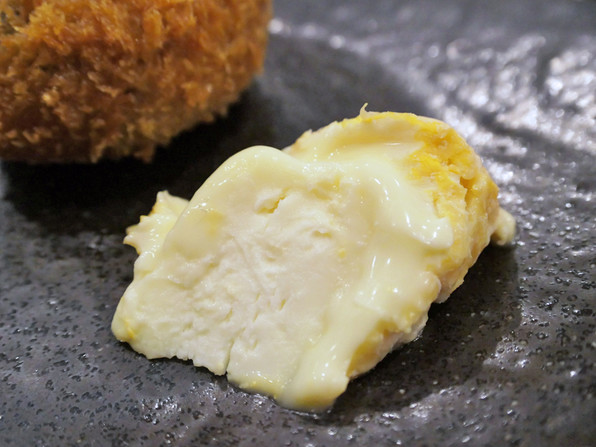 ●コロッケはシンプルな味で、ラングルが旨味と塩気を添えるわけです。最後、ラングルにはちみつもかけてみましたよー。
