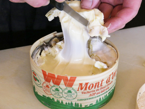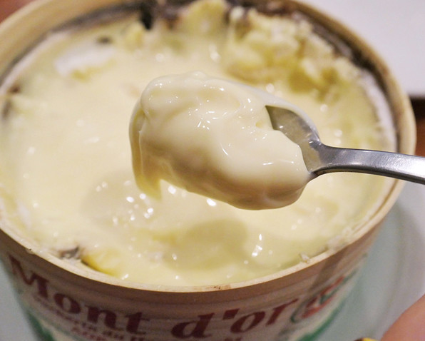 ●Mont d’or モンドール(AOP)です。この通り、ジャスト食べ頃でした。すくって食べたらトロトロトロ、上品なおいしさ、でも濃厚で、旨い旨いとうわごとのように言うばかりです。