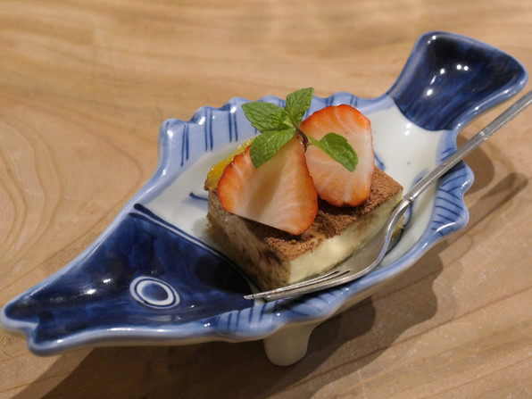 大きいのを2人で1杯、焼いたり蒸したりいろいろにして食べさせてもらいました。トマトの一品にはまぐりのお椀、小肌のにぎり寿司、にゅうめんや玉子とじのかに玉、蟹ご飯やらもたっぷり味わって、甘味はティラミス、最後にいつものわらび餅。