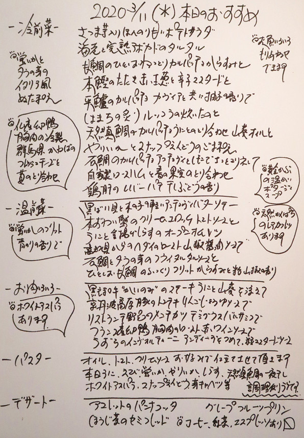 「リストランテ 野呂」3月11日(水)20時半~のはずが、またしても混み混み混みだったのでずらして21時前~。
