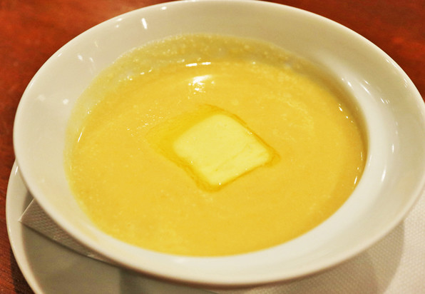 ●今シーズン最後とのこと、黄かぶらのポタージュ。フランスの岩塩バターと。
