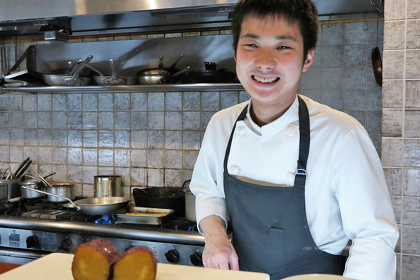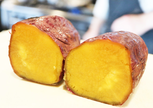 前に「甘太(かんた)くん」(という品種)でやってくれたので、「今日は何くん?」と尋ねたら「これはさつまいもくんです!」とシェフは間髪を入れずに答えたねー。