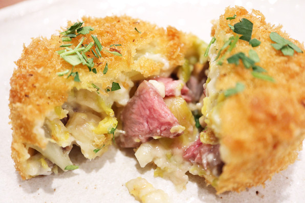 ●春キャベツとローストビーフのコロッケ クミンの香り