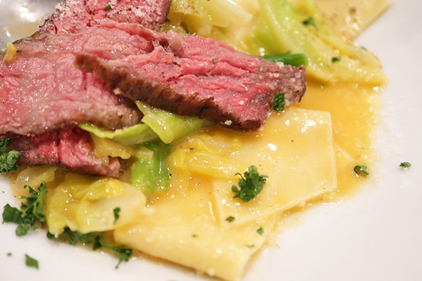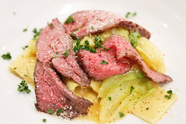 ●春キャベツとローストビーフのパッパルデッレ ローズマリーの香り。