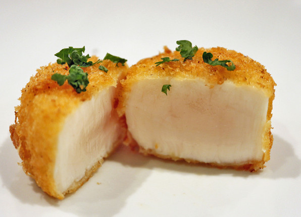 ●帆立のフライはミキュイという感じ。中がレア。絶妙な火の入り方です。