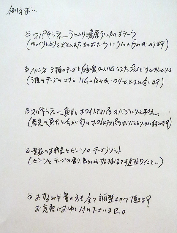 (スープ、旬の魚盛り、蟹クリームコロッケ、魚料理、肉料理、パスタ、デザートなど)