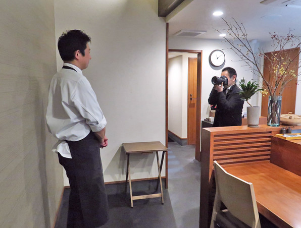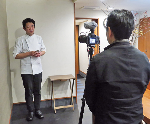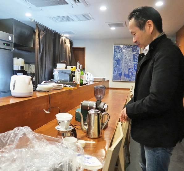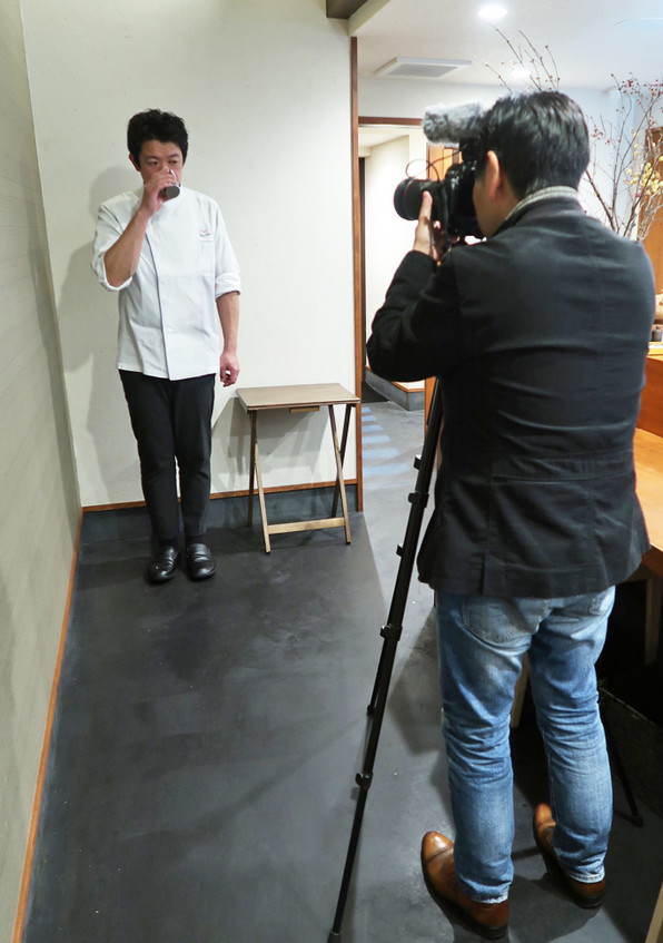 新しく発売されるカフェの豆を挽いて、目の前で淹れて、試飲したシェフのコメントを収録しようということ・・・