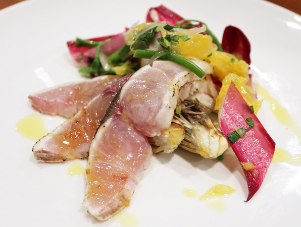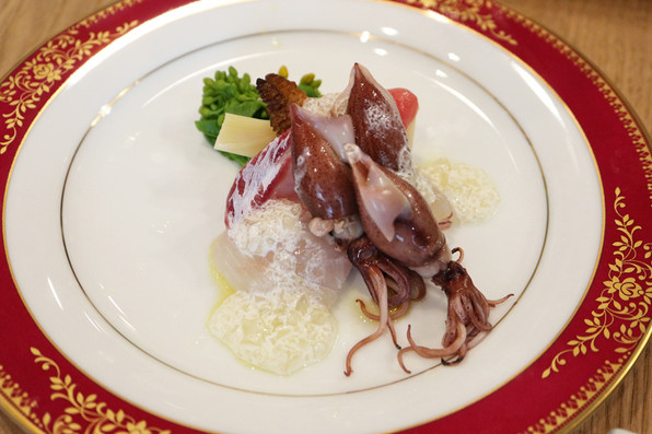 ほたるいかは旨みたっぷり、スナップえんどう香味よく食感もよい、トマトソースの塩気も温度もばちーーーーーーと決まってかんぺきのぺき子状態、理想的というのです。シンプルながら仰天のおいしさでした。