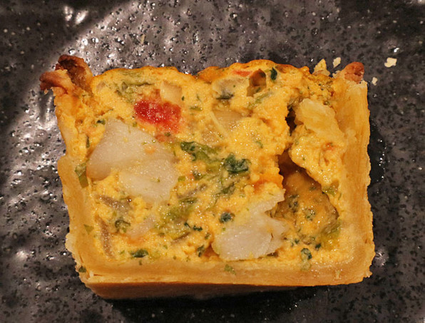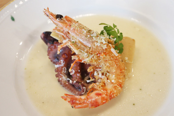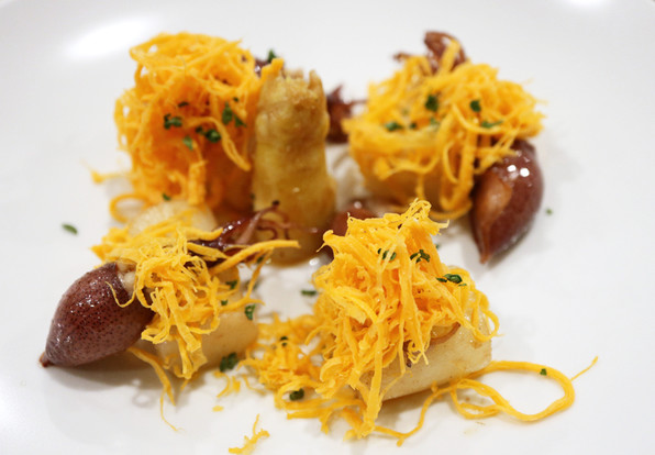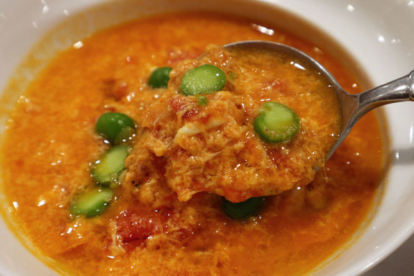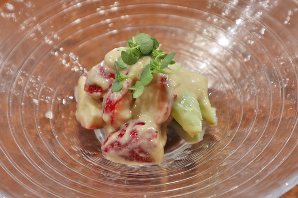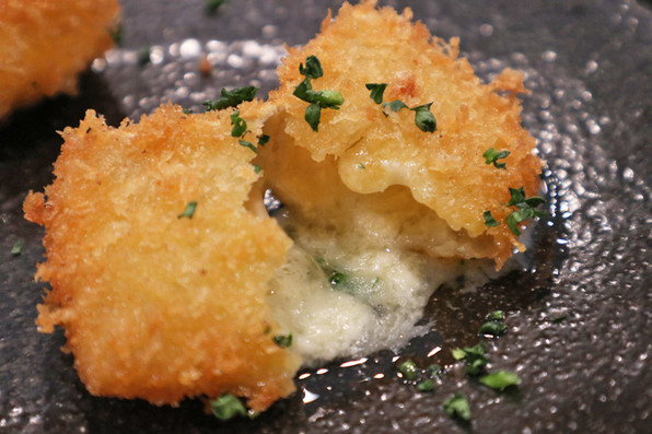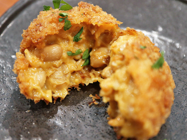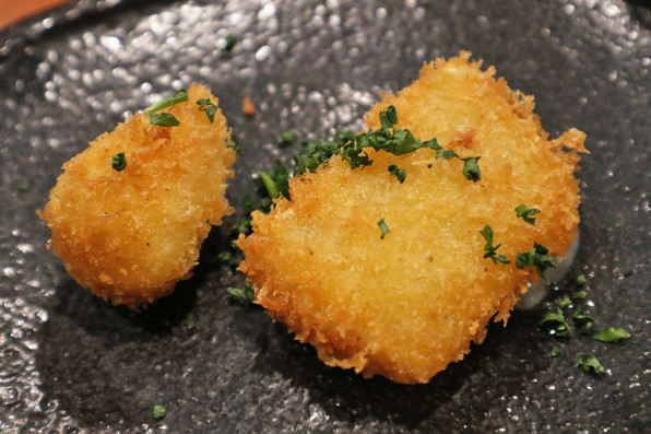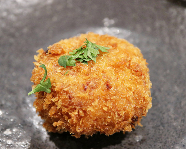 ●落花生豆腐のフリット、ソースアメリケーヌを隠し味に。