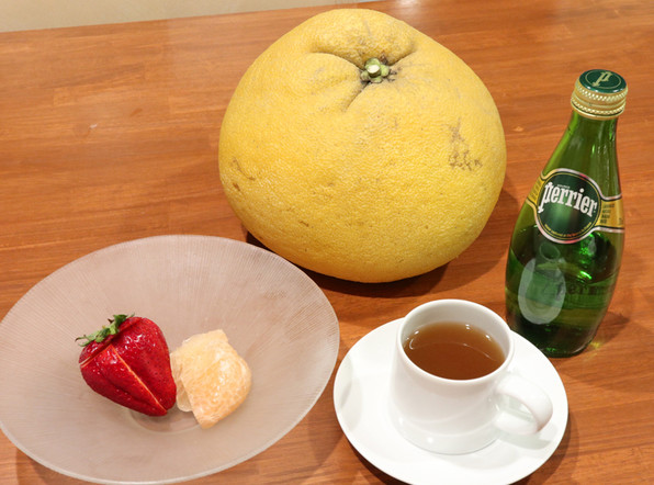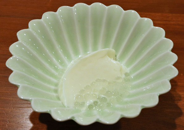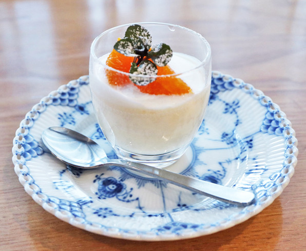 ●最後の甘味はほうじ茶プリンに黒豆、せとか(柑橘)とまりひめ(苺)でした。