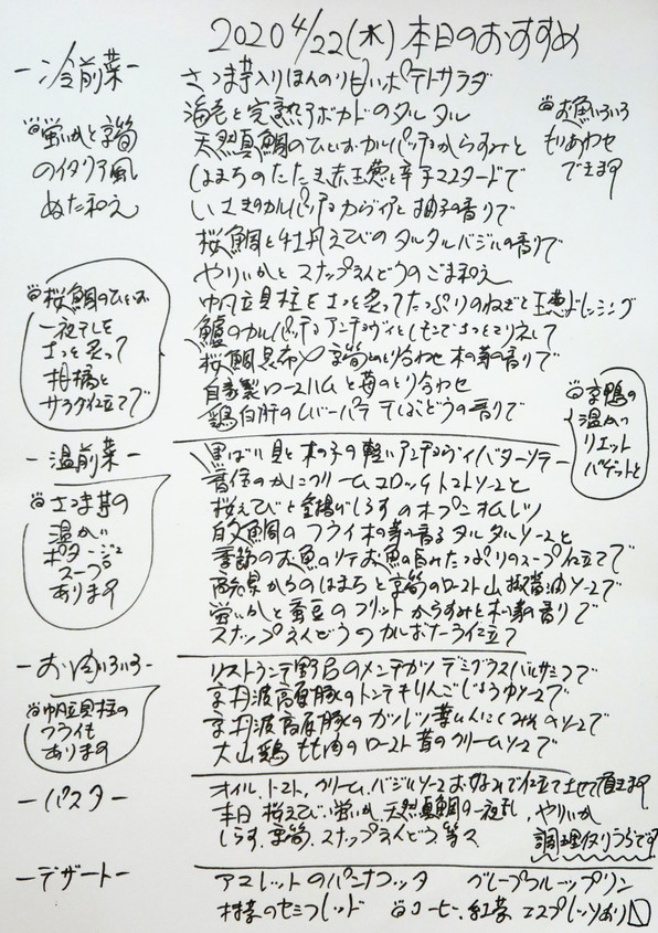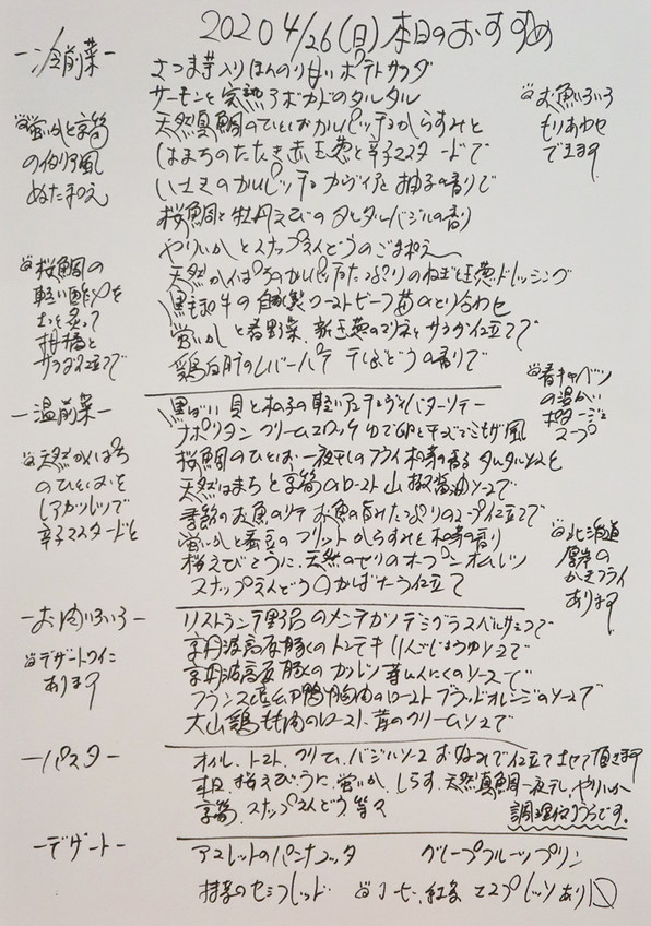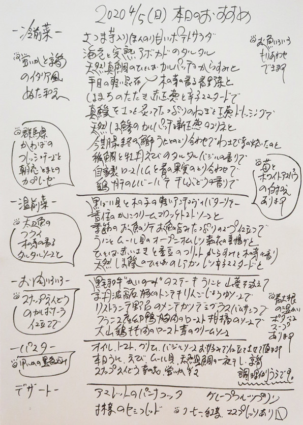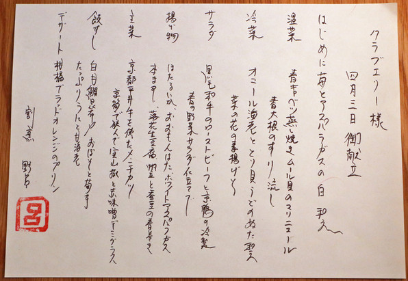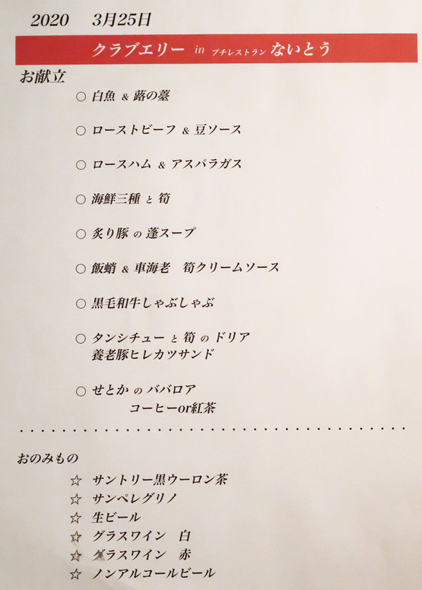 4月1日、3日、8日に行うクラブエリーの初企画のコースの試食がてらの夕食でした。初めての味、初めての組み合わせがあり、やっぱりここはルセット無限とひれ伏しました。