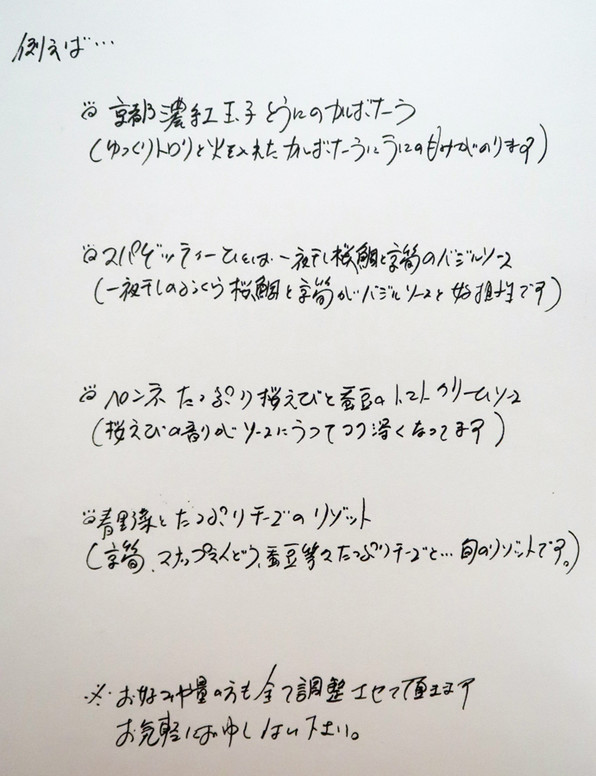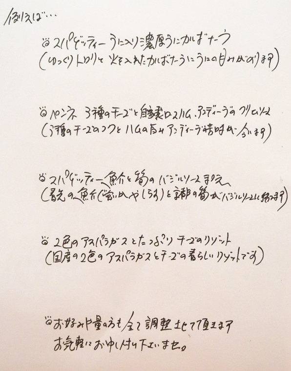 以前ある原稿に「リストランテ 野呂の料理は無限」と書いたら「人間が有限である以上、無限ということはあり得ない、」と直されたんだけれど(ひつこい・笑)、でもやっぱりわたしにとっては間違いなく無限なのでした\(^o^)/\(^o^)/