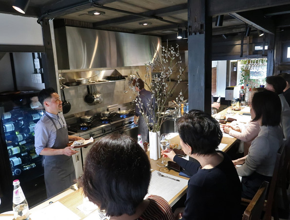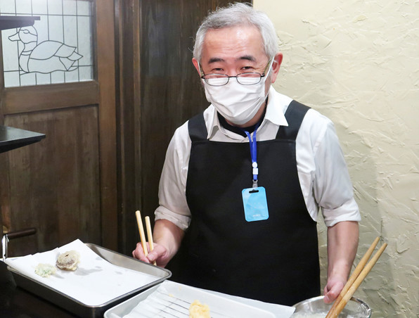 ●このお鍋を実現してくれた、料理長の横井裕史さんがお手本を示してくれます。