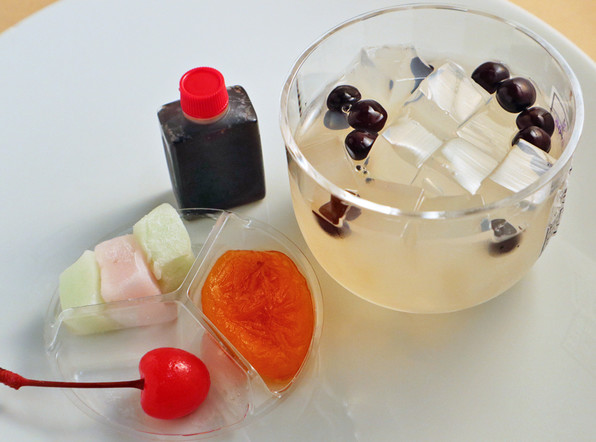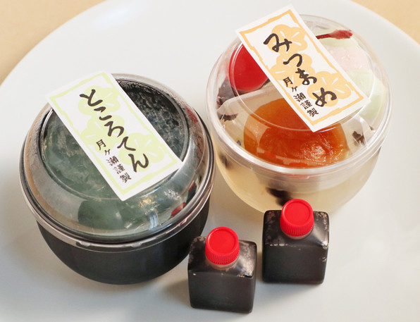 ●透明な寒天はふるふるで水分たっぷり、余分な水を切ってから、黒蜜をひたひたに回しかけて味わいます。