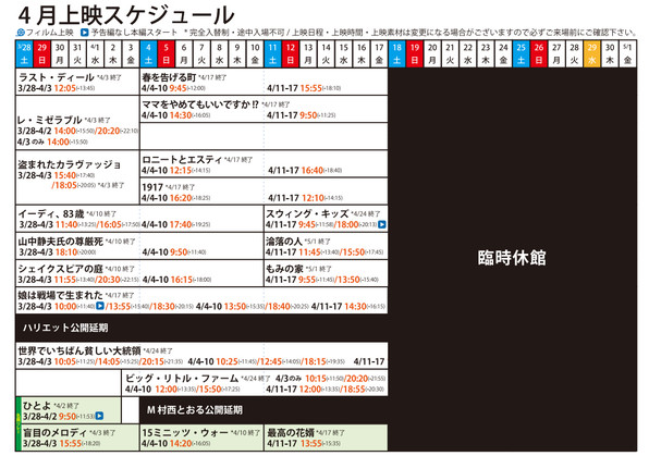 今年に入ってからでも、1~3月で、「冬時間のパリ」「男と女 人生最良の日々」「ダゲール街の人々」「アニエスによるヴァルダ」「Celle que vous croyez」(日本語タイトルなんて言ったっけ、ジュリエット・ビノシュがSNSにはまる映画)と見に行ったんだがなあ。早く再開を、再開できる世の中を~~!