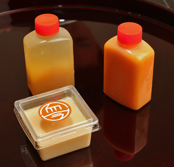 ●今回は、3つのたれで味わう鱧しゃぶ、塩ぽん酢、酢味噌、そしてトマト風味のたれを作ってもらいました。赤くていいでしょ\(^o^)/\(^o^)/