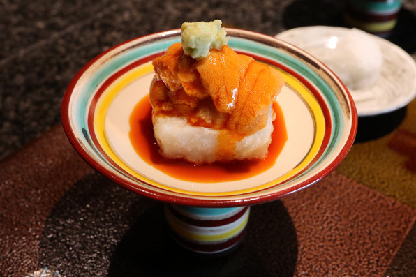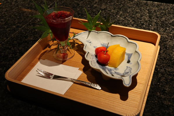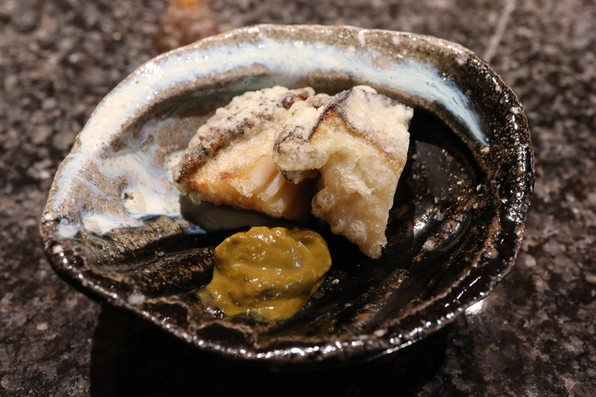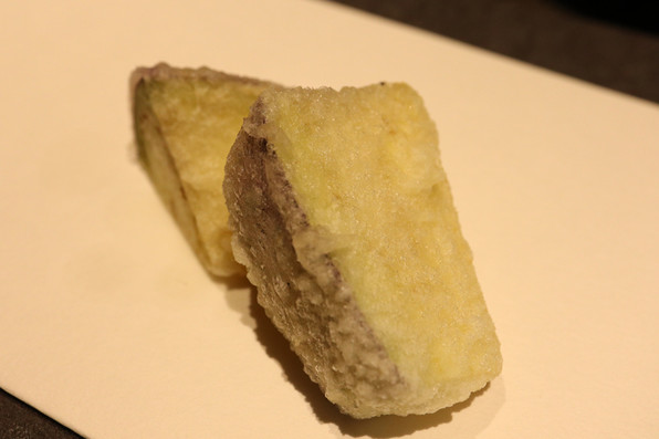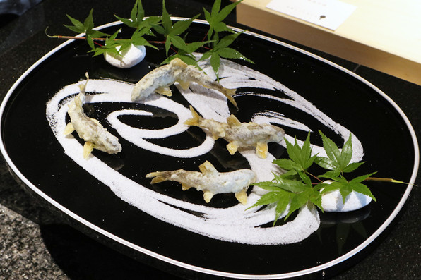 ●鮎は尾形光琳のような波形の文様でプレゼンされました。ごく薄く衣がついて、いとも上品な天ぷらになっていました。