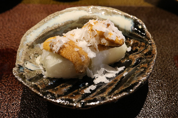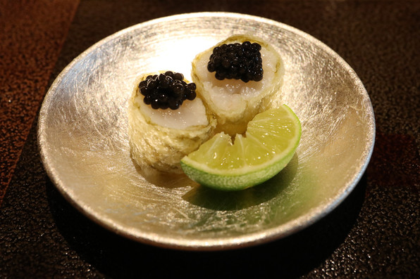 ●白海老の白板昆布巻き、上に宮崎のカヴィア。