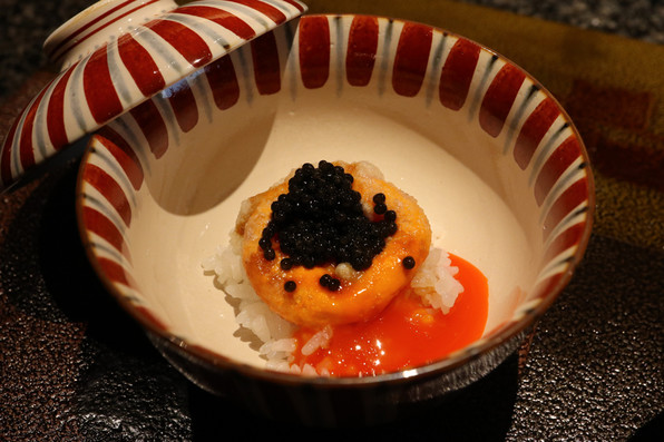 ●卵黄の天ぷらで卵かけごはん、上にカヴィア。これたまらん。