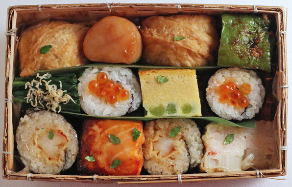 ヴァージョンアップされていると聞いて、いただいてみたら本当によりすてきになっていました。小さないなり寿司やいくら巻きなどが加わっていました。
