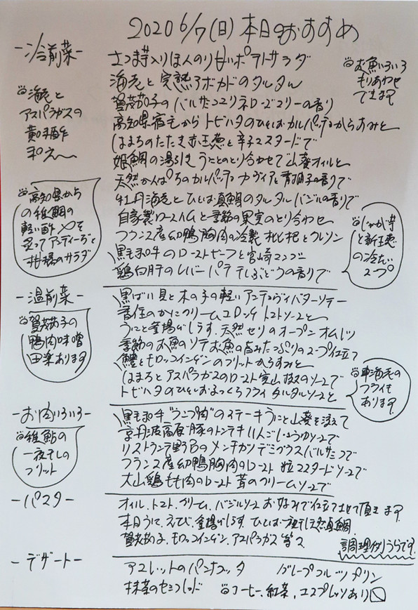 いつもの日曜のりすのろ、6月7日(日)「リストランテ 野呂」、すでに以前と同様、20時半でなければ入れなくなっています。