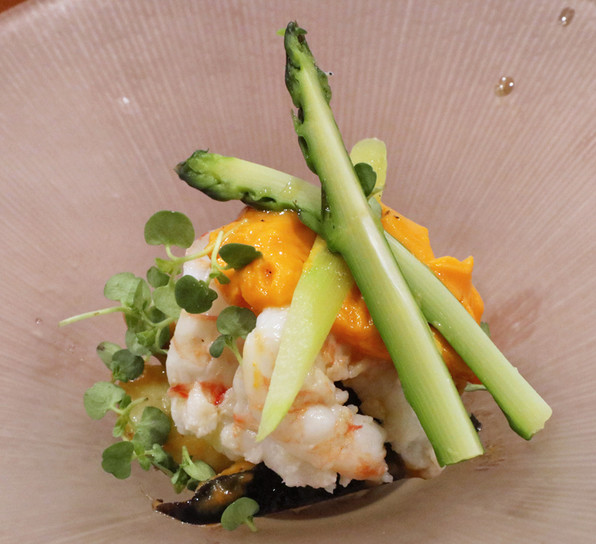 ●黄身酢でぼたん海老、水茄子とトマト味噌
